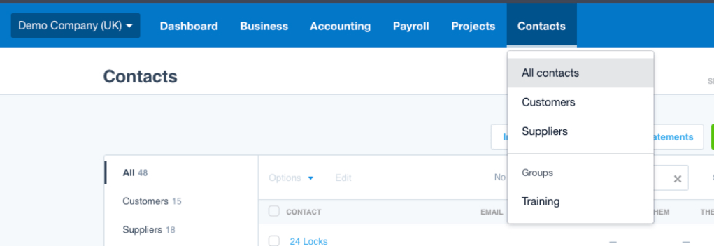 One of Xero’s central features is the database of customers and suppliers called Contacts. Most, if not all, Xero transaction entries will include a Contact as part of the details in the entry.